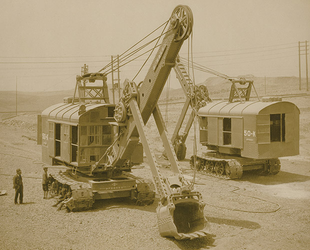 日本明治期以后,公共建設(shè)工程開始引進和使用建機,工程現(xiàn)場機械化得到了不斷發(fā)展,而當時的建筑機械卻主要依賴從歐美進口。在這種狀況下,神戶制鋼(神鋼建機母公司)于1930年首次成功開發(fā)出日本國產(chǎn)電動挖掘機50K(1.5㎡)。電動挖掘機樣式采用美國比塞洛斯公司50B,歷經(jīng)6年制造而成。挑戰(zhàn)新技術(shù)的熱情和姿態(tài),源自這臺電動挖掘機,并一直延續(xù)至今。