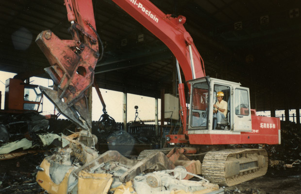 1980年油谷重工為滿足用戶需求開發(fā)銷售了國產(chǎn)首臺裝載固定式切割機的汽車解體機。利用夾鉗臂按住物體,切割機進行切割的汽車解體機與過去依賴人工的方法相比,在作業(yè)效率和安全性能上得到了全面的提升。并為此后的多功能汽車解體機和發(fā)動機解體機的誕生打下了堅定的基礎(chǔ)。