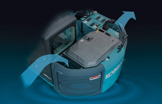 液壓挖掘機講究“肅靜”,在充分降噪的同時,又能發(fā)揮良好的防塵效果,這就是新冷卻系統(tǒng)“iNDr”。開發(fā)采用同系統(tǒng)的后部超小轉(zhuǎn)動液壓挖掘機已經(jīng)上市。根據(jù)獨自創(chuàng)意研發(fā)的“iNDr”達到了低于日本國土交通省指定的超低噪音型機械標準值5分貝的水平,同時還防止塵土和粉塵的侵入,并實現(xiàn)了維護保養(yǎng)便捷化。