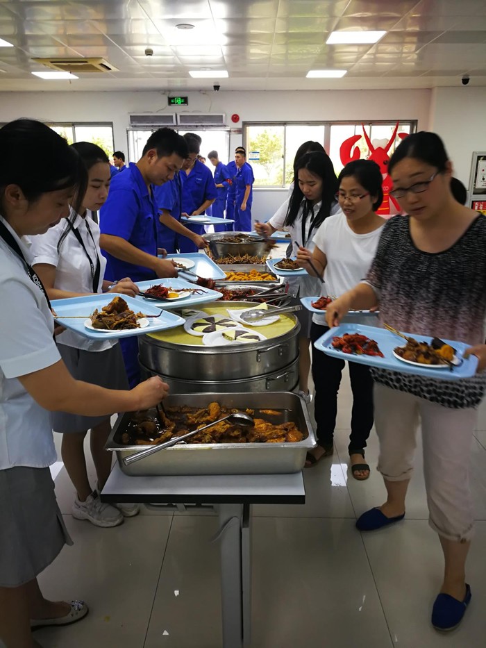 06月19日,端午小長假后第一個工作日,杭州神鋼CSR委員會聯(lián)合杭州大耳朵餐飲有限公司,在食堂舉辦第二屆美食節(jié)活動,四十多個品種的美食一溜排開,任員工自選,本次活動的主打產(chǎn)品為香辣小龍蝦,四百斤的香辣小龍蝦源源不斷的送上來,讓大家一次性的過足龍蝦癮。